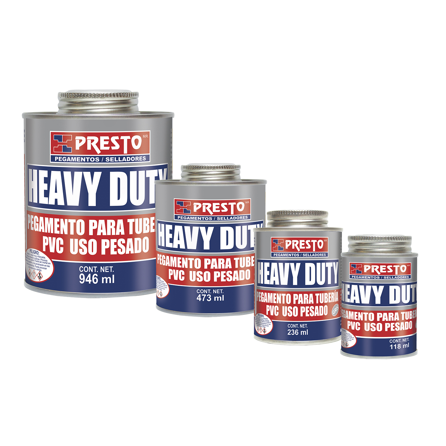 El pegamento PVC PRESTO HEAVY DUTY es un producto especialmente formulado para la unión permanente de tuberías y conexiones de PVC hasta de 12” de diámetro y cédula 40 y 80.