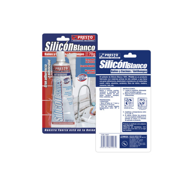 Fabricado con materias primas de alta calidad, proporciona una gran adherencia, elasticidad y resistencia, en materiales como: vidrio, aluminio, cerámica, fibra de vidrio, madera, acero inoxidable, laminado plástico. Contiene Antihongos, ideal para baños y cocinas. Resiste temperaturas de -60° C hasta 180°C.