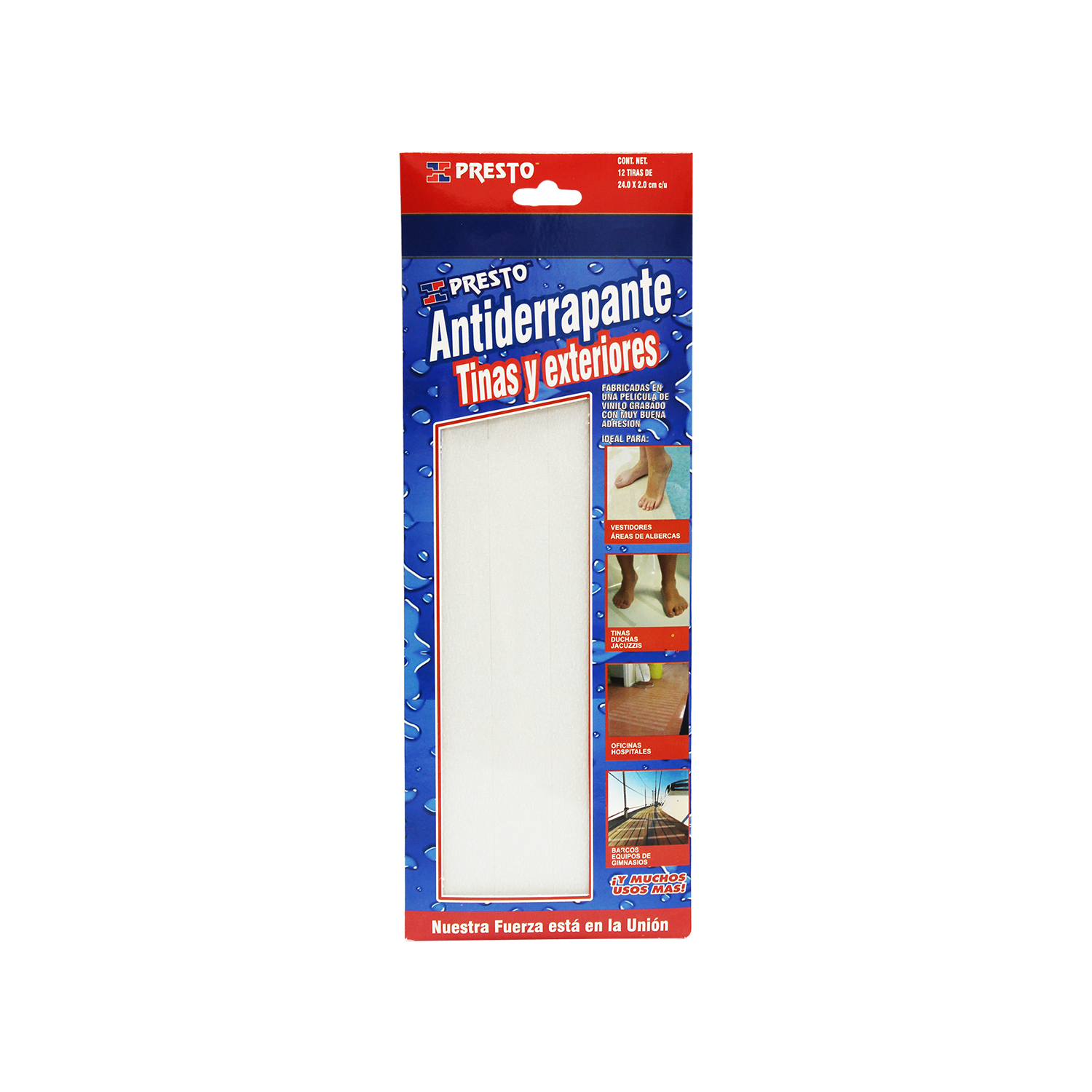 Proporciona tracción en especial para pies descalzos en barcos, tinas y exteriores de albercas.