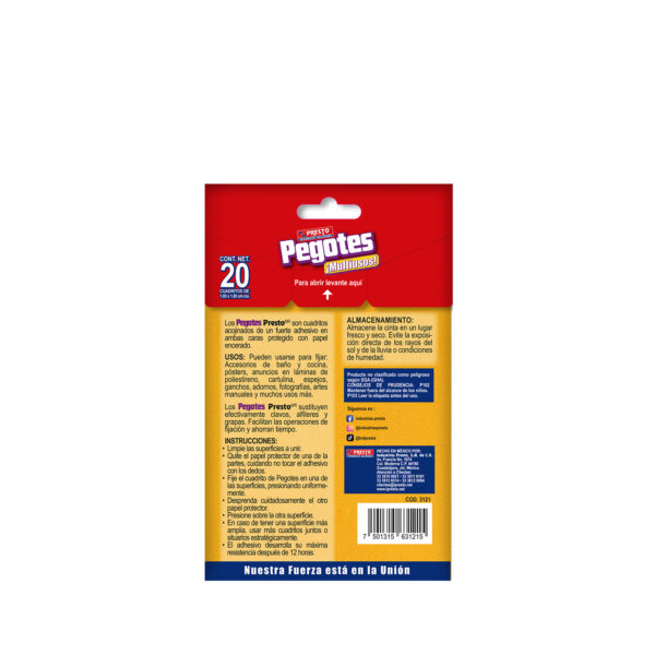 Ideales para fijar pósters, fotografías, accesorios ligeros de plástico para baños y cocinas, etc. Sustituye con eficacia a grapas y tachuelas. De rápida y fácil aplicación. Adhesivo acrílico base agua.