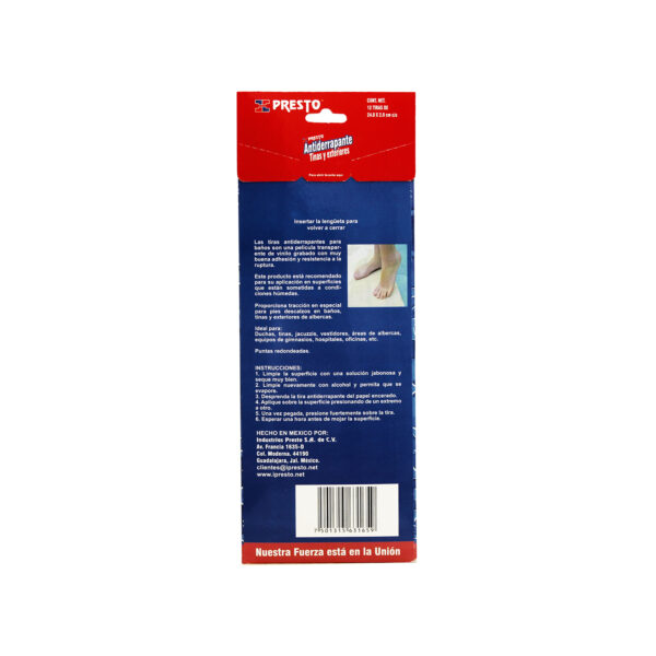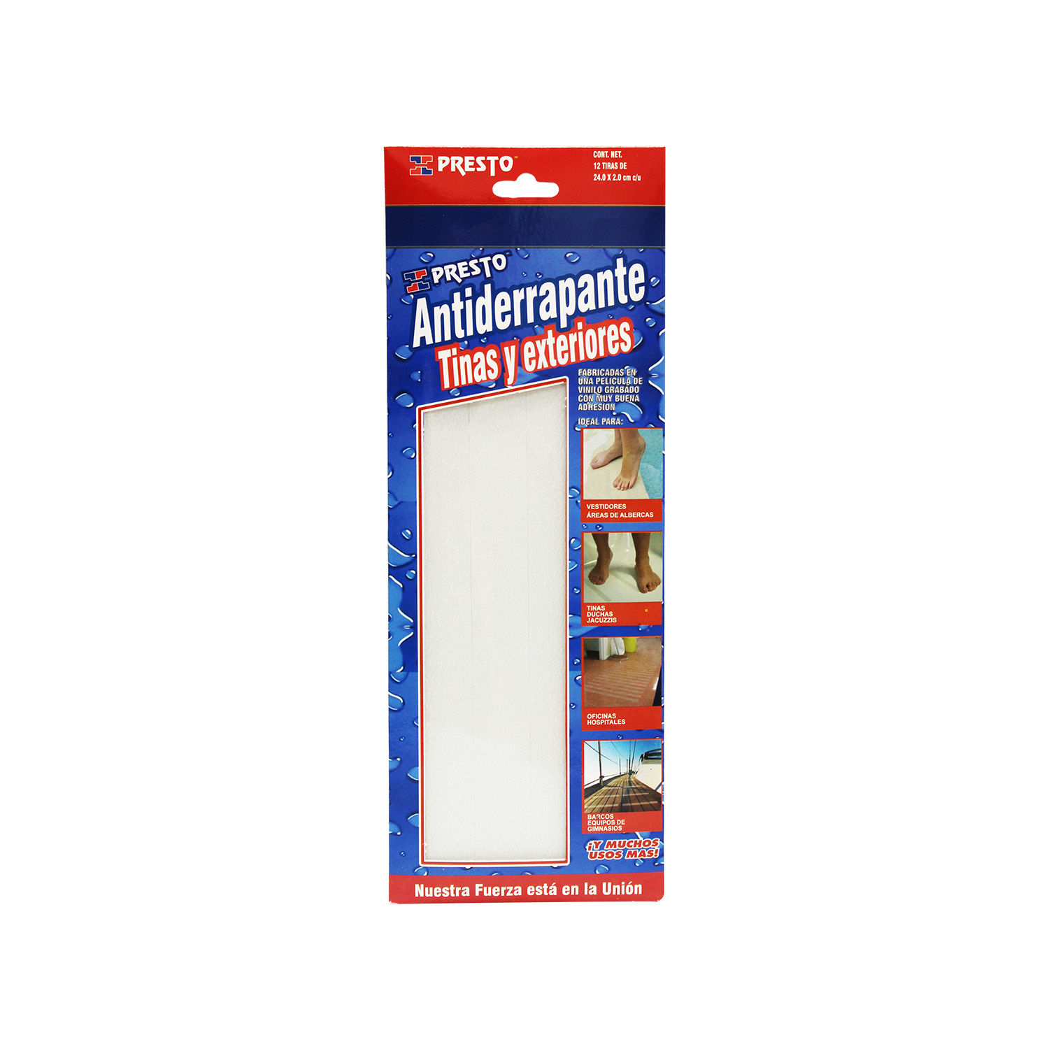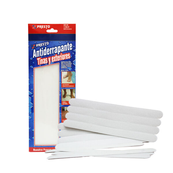 Las tiras antiderrapantes para baños son una película transparente de vinilo grabado con muy buena adhesión y resistencia a la ruptura.